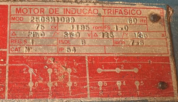- Potência: 75 cv, 6 polos, 220 v/380 v