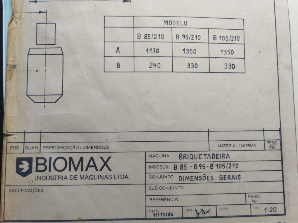 - Produção: 600 kg/h (Serragem Pinus)