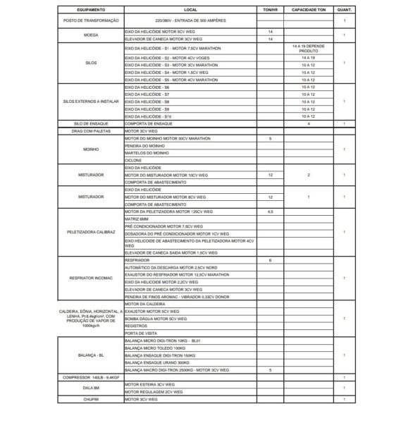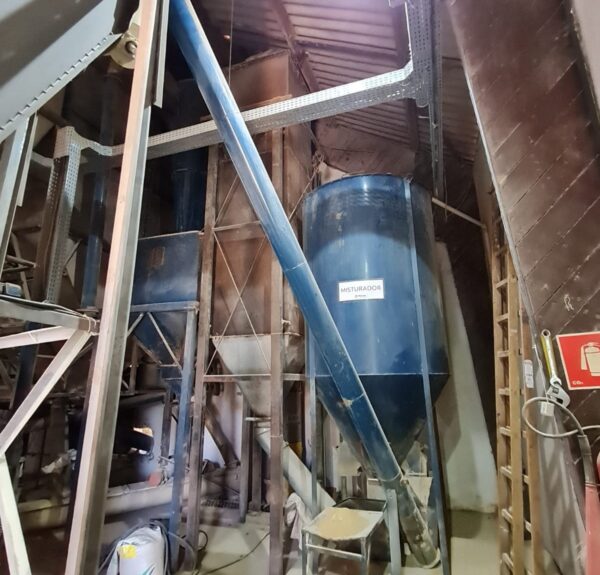 Conjunto de máquinas e equipamentos para produção de ração peletizada.