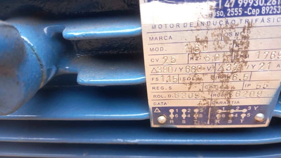 - Potência: Motor 25 cv, trifásico;