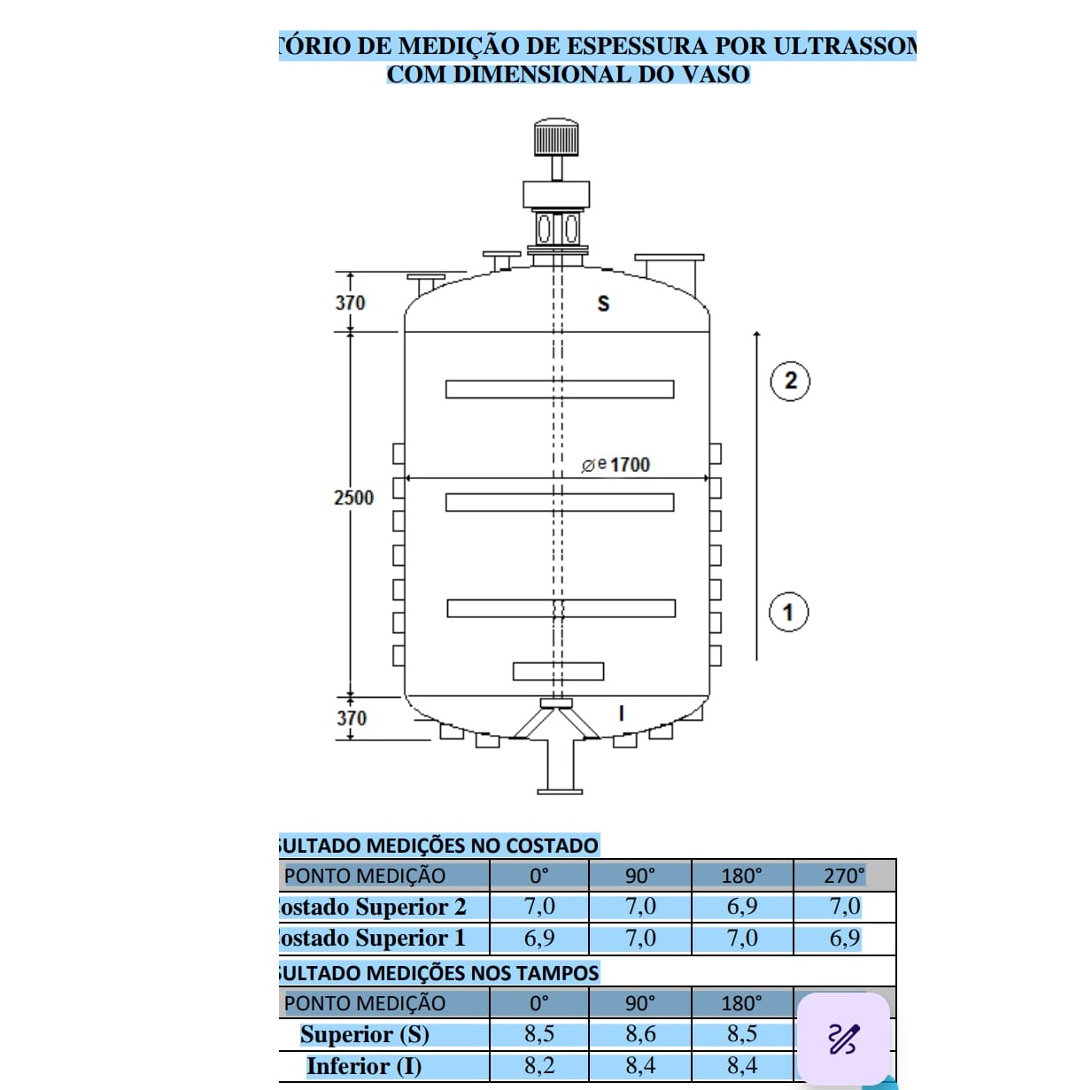 - Espessuras medidas por ultrassom (detalhamento na ficha técnica)