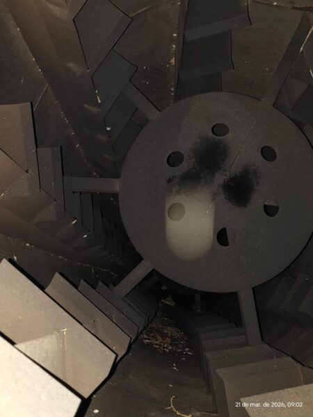 - Movimentação da biomassa cilindro por aletas interna (retas) e exaustão por sucção